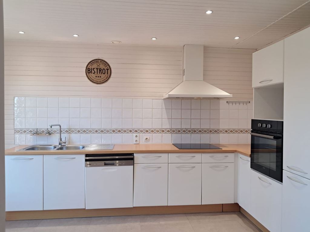 Au premier étage, un beau salon, où trône la cheminée, se remplit de lumière et s'ouvre sur un balcon. Dans la continuité, la cuisine aménagée, équipée, jolie et sobre.